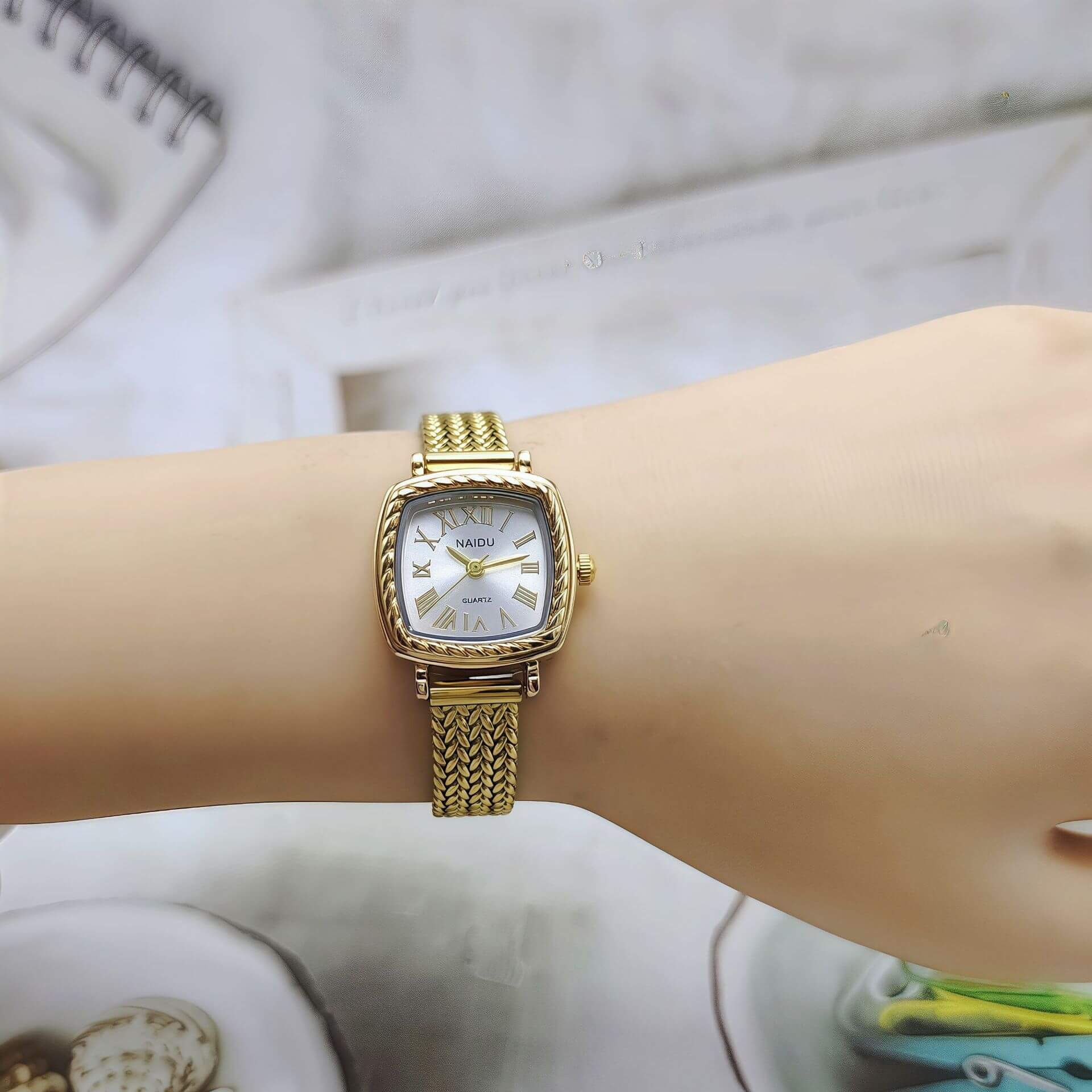 কোডঃ WL10gw; Mesh strap Roman watch